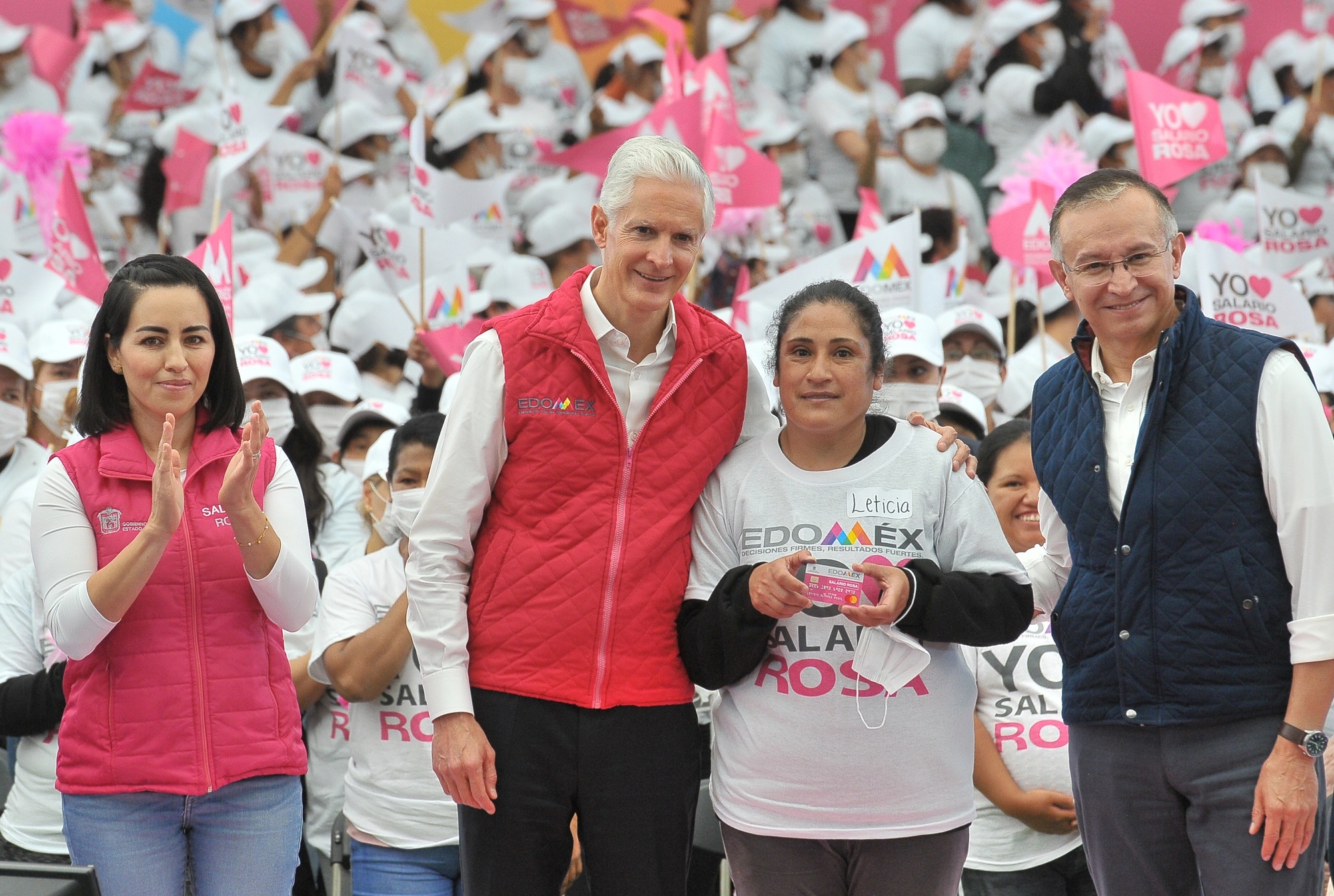 También refirió que el Salario Rosa es el programa más importante con el que cuenta el Gobierno del Estado de México para apoyar a las mujeres, el cual nació hace cinco años para reconocer la labor de las amas de casa, quienes trabajan los 365 días del año sin descanso, y que normalmente no se les agradece lo suficiente.