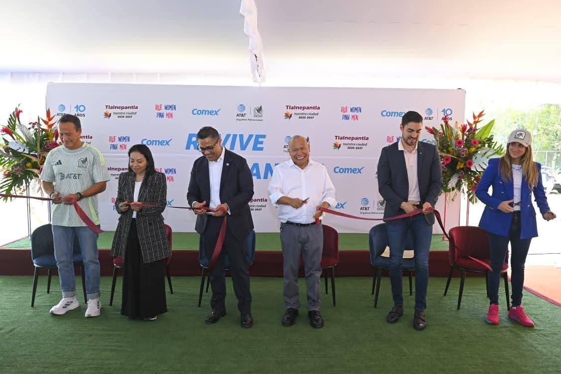 Tlalnepantla, Méx.-El Presidente Municipal, Raciel Pérez Cruz, indicó que la coordinación entre empresas como AT&T y Comex, en alianza con el proyecto Blue Women Pink Men, permitió la rehabilitación integral de canchas del Deportivo Caracoles, que serán utilizadas vecinos.