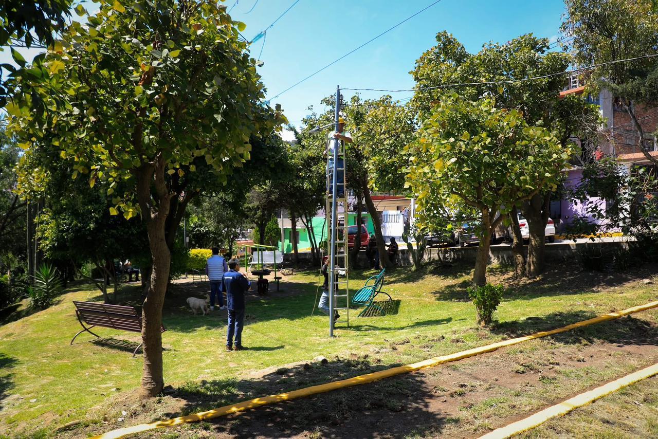 Naucalpan, Méx.- El presidente municipal, Isaac Montoya Márquez, entregó en las colonias Lomas de Occipaco y San Juan Totoltepec, dentro del programa “Huellas de la Transformación”, el mejoramiento de parques y vialidades, que brindarán mayor seguridad en las colonias y sus alrededores.