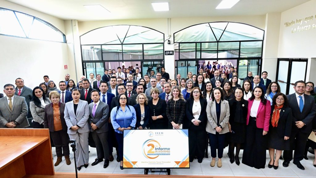 Toluca, Méx.- En el marco del Segundo Informe de Actividades del Tribunal Electoral del Estado de México (TEEM), correspondiente al periodo 2023-2025, la gobernadora Delfina Gómez Álvarez reconoció el trabajo y liderazgo de la Magistrada Martha Patricia Tovar Pescador, quien concluye su gestión como presidenta del órgano jurisdiccional.