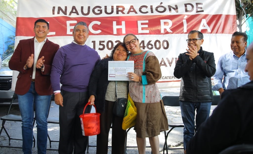 Ecatepec, Méx. – La presidenta municipal Azucena Cisneros Coss inauguró la lechería número 106 del programa “Leche para el Bienestar” en la colonia Buenavista, que se suma a la recién abierta en San Francisco de Asís. Estos establecimientos benefician a más de 244 mil personas en Ecatepec, distribuyendo casi 90 mil litros de leche diaria a bajo costo, gracias al apoyo del gobierno federal.