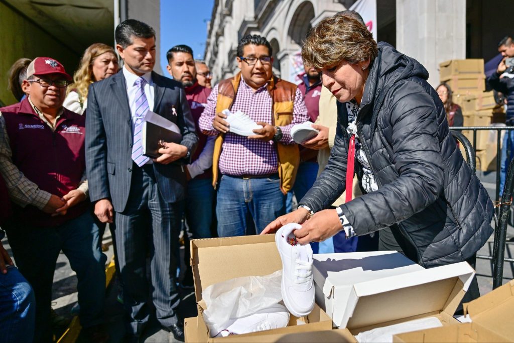 Toluca, Méx.- La gobernadora del Estado de México, Delfina Gómez Álvarez, expresó su profundo agradecimiento a los productores de San Mateo Atenco por donar 170 pares de calzado destinados a las familias afectadas por las recientes lluvias e inundaciones en Veracruz.
