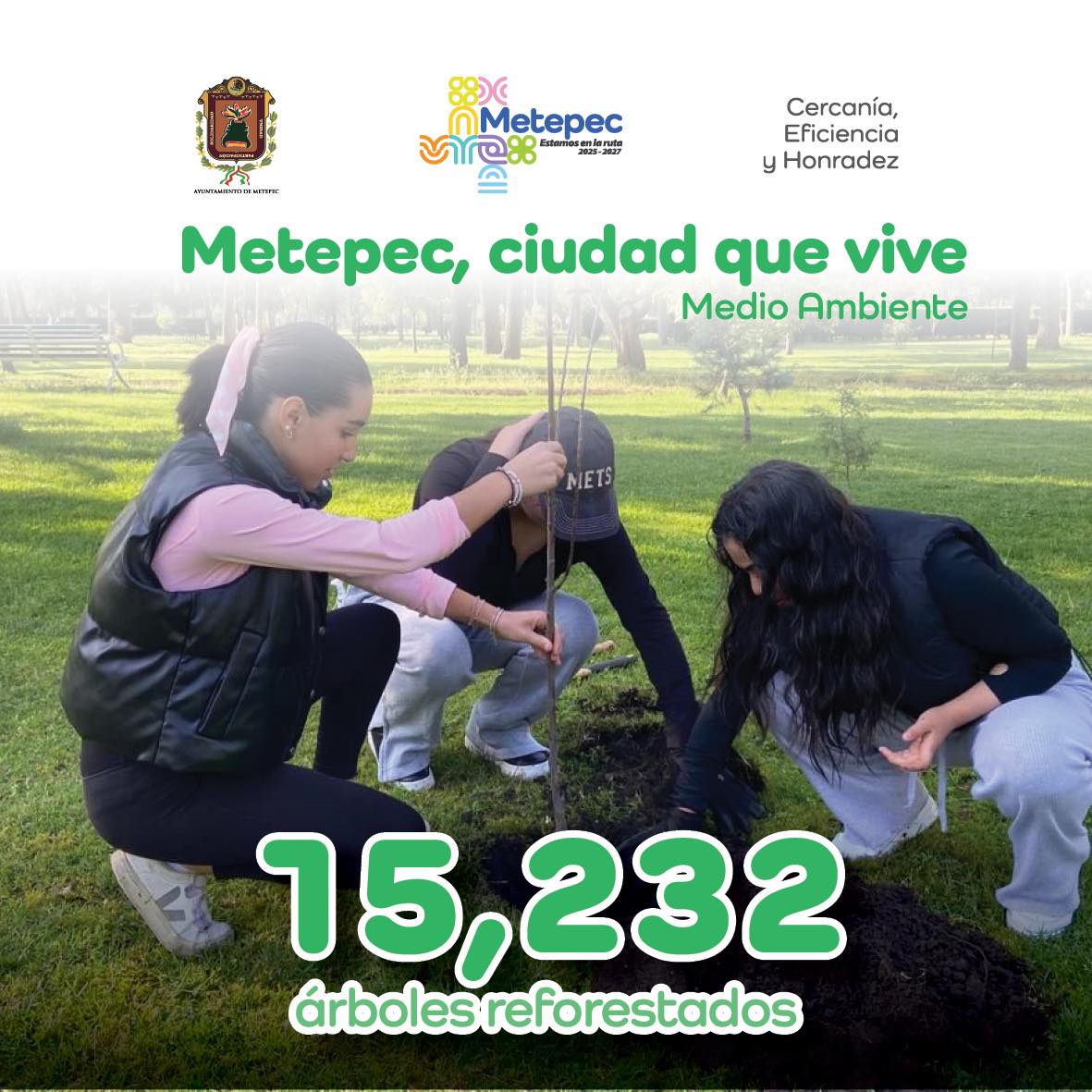 En sus redes sociales, el alcalde compartió que, durante lo que va de la administración, se han sembrado 15, 232 árboles. “Metepec, ciudad que vive. Reforestamos 15 232 árboles”, escribió.