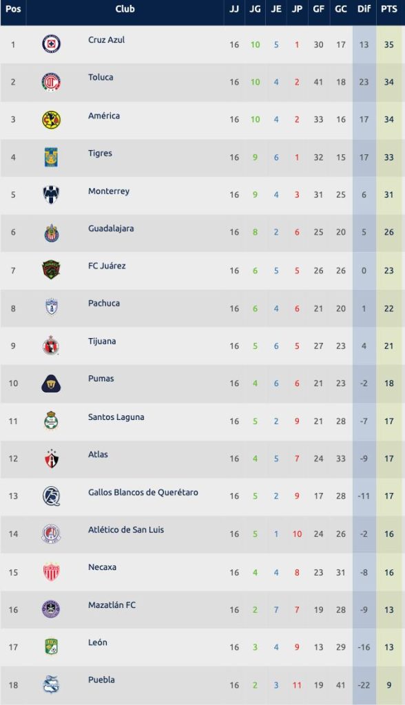 * Cruz Azul es nuevo líder de la Liga MX, Toluca pierde gas y América venció a la Fiera