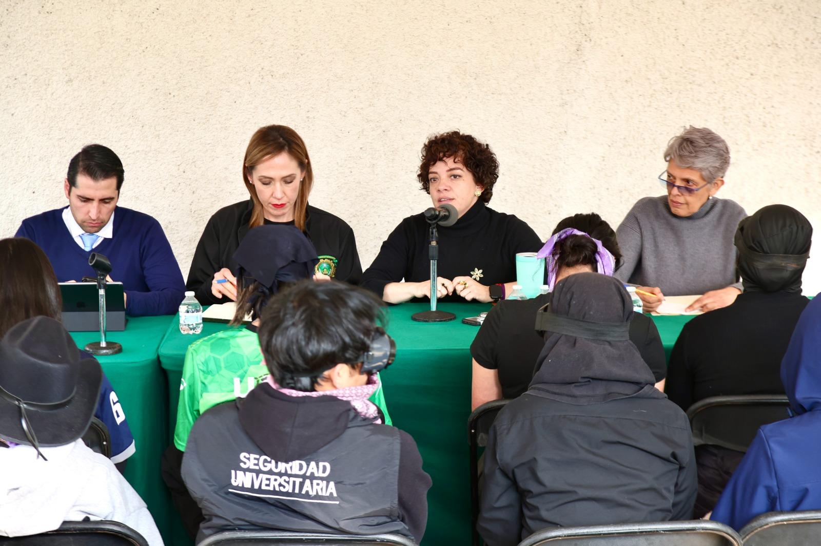 Toluca, Méx. – En seguimiento a los acuerdos generados el pasado viernes 31 de octubre, integrantes de la administración central de la Universidad Autónoma del Estado de México (UAEMéx) asistieron a una mesa de trabajo con el Enjambre Estudiantil Unificado (EEU) para acordar la entrega del Edificio Histórico de Rectoría.