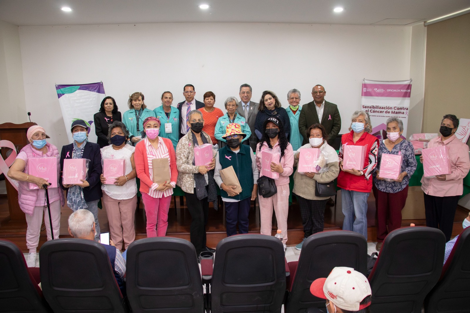 Toluca, Méx.- Siguiendo la política de la Gobernadora Maestra Delfina Gómez Álvarez, de brindar apoyo asistencial a los grupos más vulnerables; Apoyo Voluntario ISSEMYM, A.C., a través del Instituto de Seguridad Social del Estado de México (ISSEMYM), entregó cinco pelucas oncológicas y 15 prótesis de mama a igual número de pacientes del Centro Oncológico Estatal.