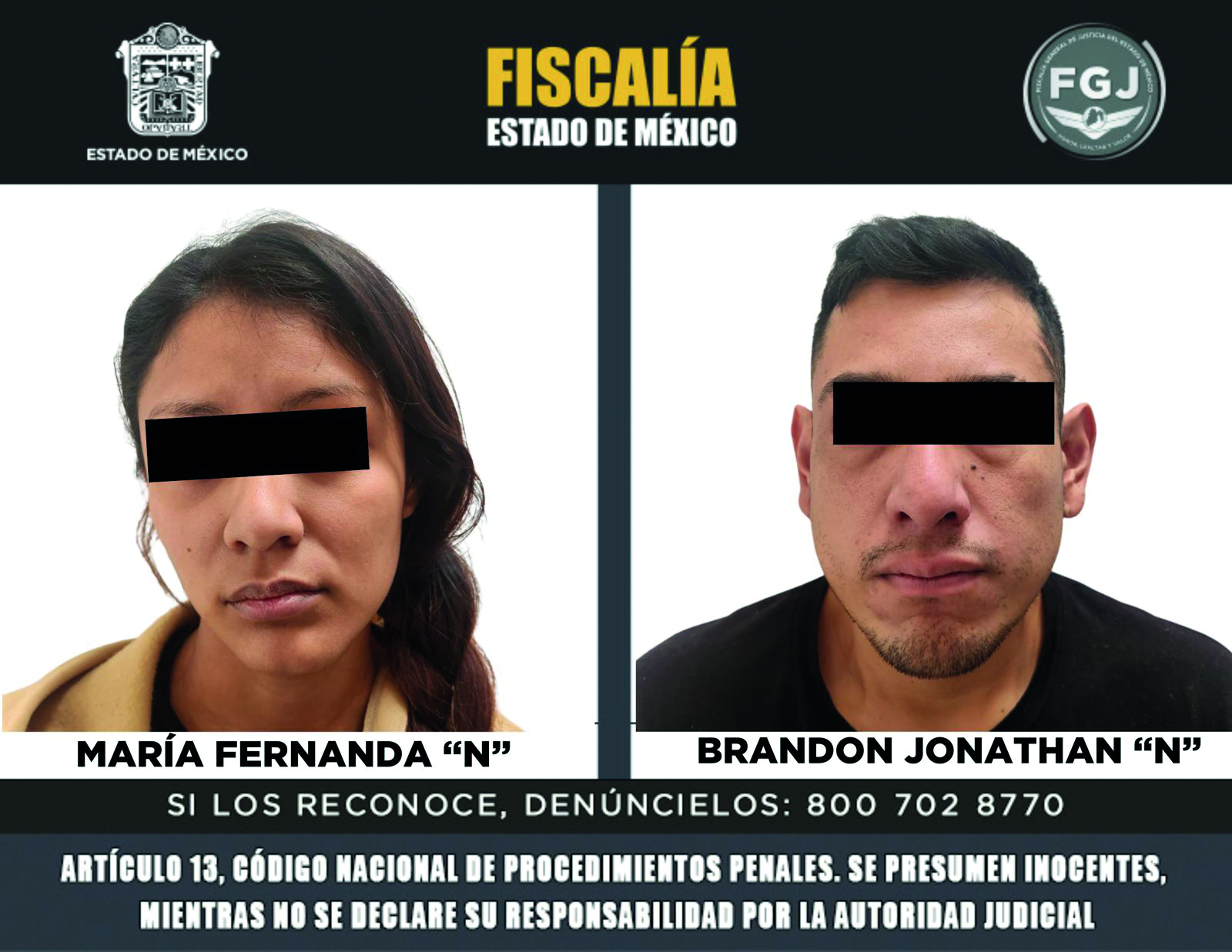 Toluca, Méx.- Elementos de la Fiscalía General de Justicia del Estado de México detuvieron y cumplimentaron orden de aprehensión en contra de María Fernanda “N” y Brandon Jonathan “N”, investigados por su posible participación en el delito de desaparición cometida por particulares, en agravio de un sacerdote reportado como desaparecido en el municipio de Tultitlán.