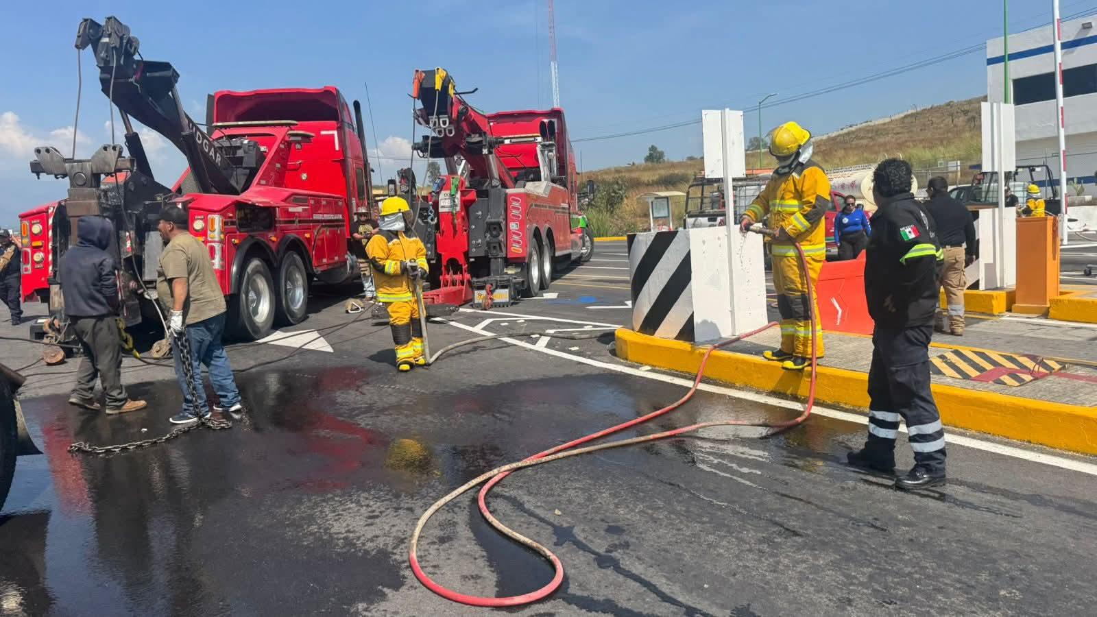 Tenango del Valle, Méx.- Todos los protocolos de emergencia fueron activados, luego de que una pipa cisterna de doble remolque registró una fuerte fuga de gasolina en la autopista Tenango–Ixtapan de la Sal, a la altura de la caseta de La Finca, lo que provocó el cierre total de la vialidad en ambos sentidos.
