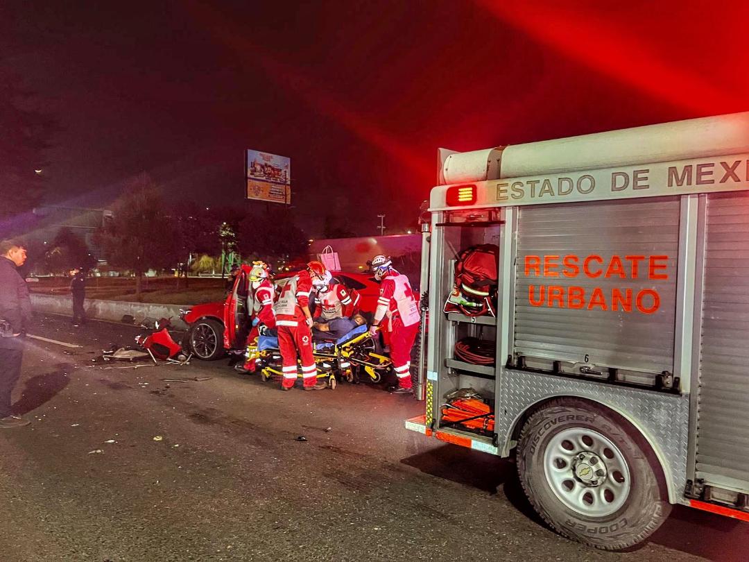 Toluca, Méx.- La madrugada de este lunes, personal paramédico de las delegaciones de Cruz Roja Toluca y Metepec respondió a un reporte de accidente vial registrado sobre Paseo Tollocan, a la altura del puente Chrysler.