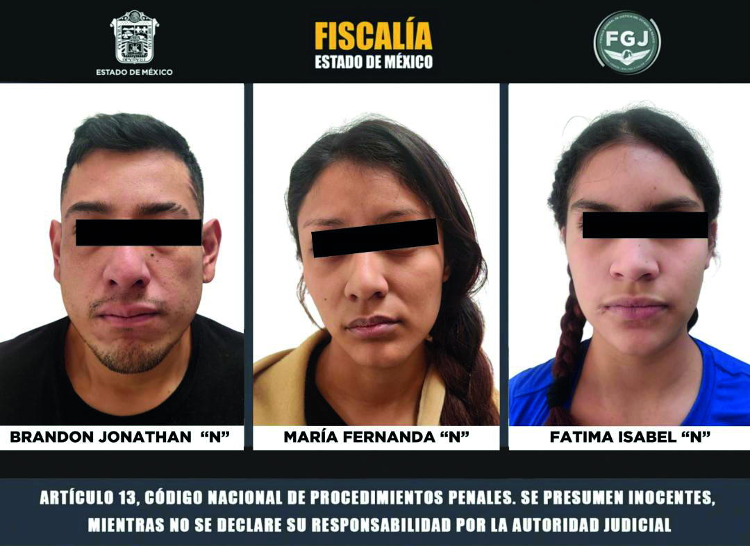 Por lo que el pasado 14 de noviembre, elementos de la Fiscalía del Estado de México cumplimentaron orden de aprehensión y en contra de Fátima Isabel “N”, investigada por el delito de desaparición cometida por particulares, posteriormente fue ingresada a un penal a disposición de la Autoridad Judicial quien determinará su situación jurídica, previamente también detuvo a ingresó a un penal a Brandon Jonathan “N” y María Fernanda “N” por el mismo hecho delictivo.