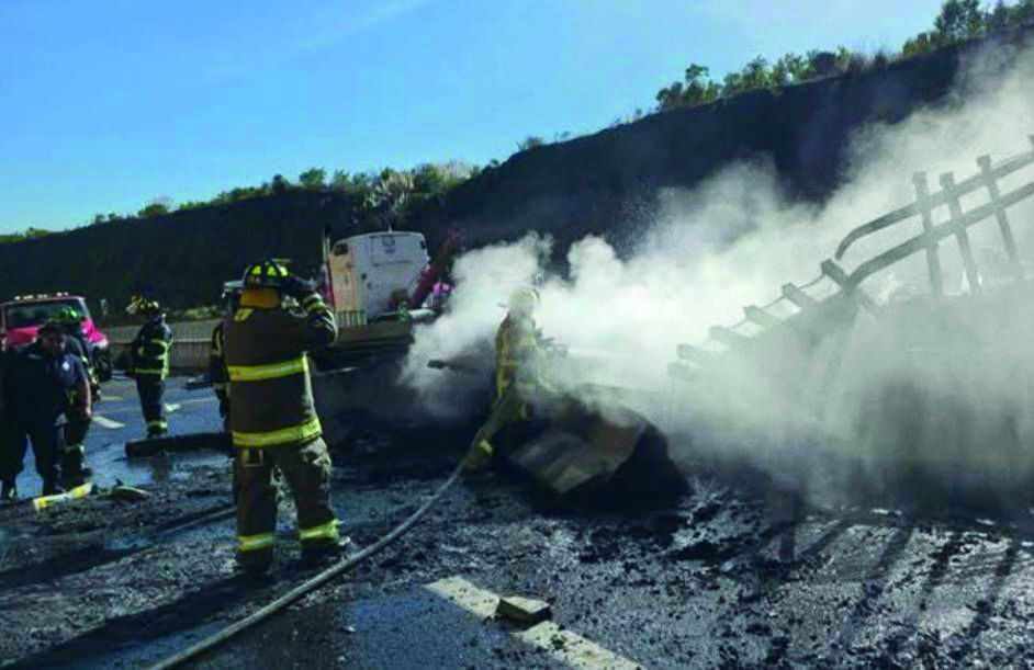 Bomberos y personal de Protección Civil acudieron al lugar para sofocar el fuego, mientras cuadrillas de la autopista continúan con la remoción de escombros y materiales calcinados.