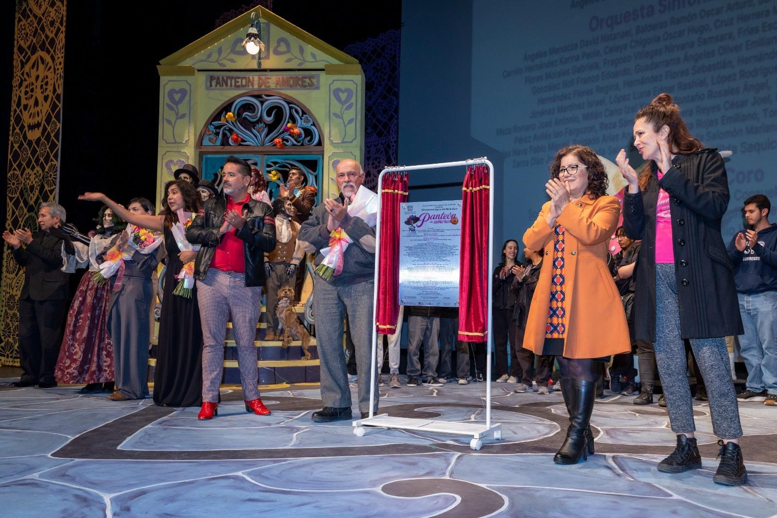 En presencia de la rectora de la UAEMéx, Martha Patricia Zarza Delgado, el escritor Jesús Angulo y el director Juan Carlos Embriz Gonzaga, develaron la placa conmemorativa a las cincuenta presentaciones de la obra que destaca la tradición mexicana.