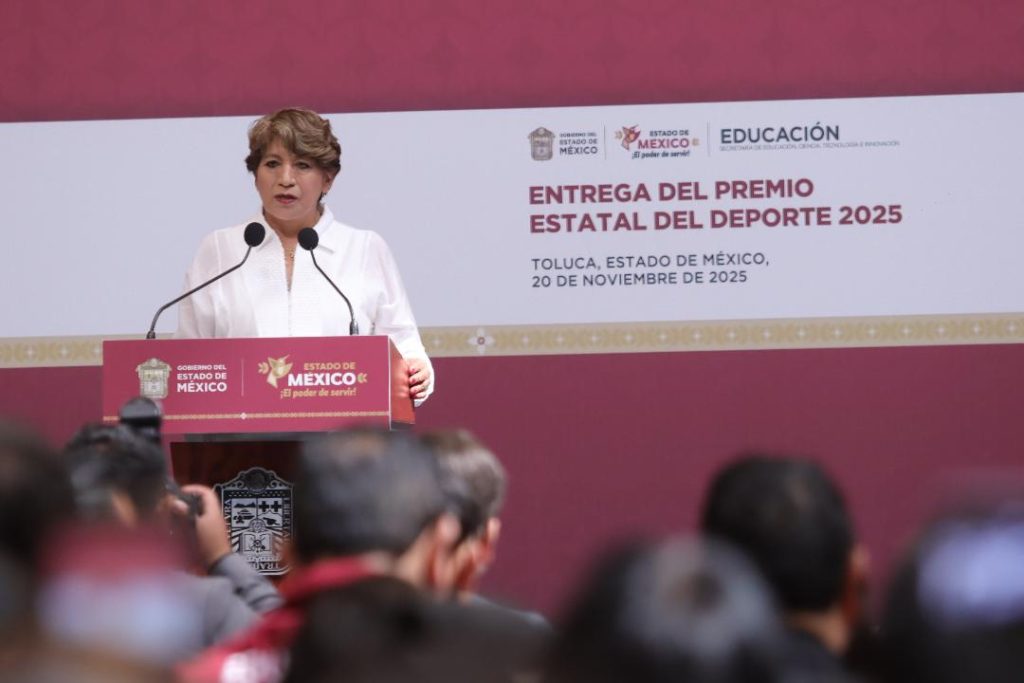 Toluca, Méx.– En el marco del 115 aniversario del inicio de la Revolución Mexicana, la gobernadora Delfina Gómez Álvarez encabezó la ceremonia de entrega del Premio Estatal del Deporte 2025, donde reconoció a atletas, entrenadores y promotores que han destacado por su disciplina, resultados y contribución al desarrollo deportivo del Estado de México.