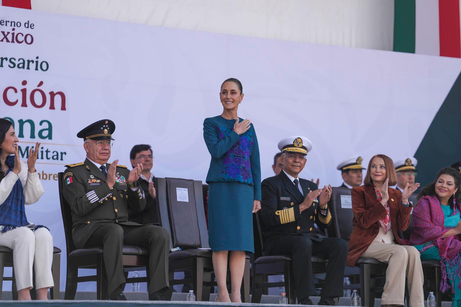 “Quien llama a la violencia, alienta al odio, pide la intervención extranjera, cree que las mujeres son débiles y piensa que la transformación duerme, se equivoca”, señaló frente a miles de asistentes y funcionarios. En el evento, el único integrante del gabinete de seguridad presente fue el secretario Omar García Harfuch.