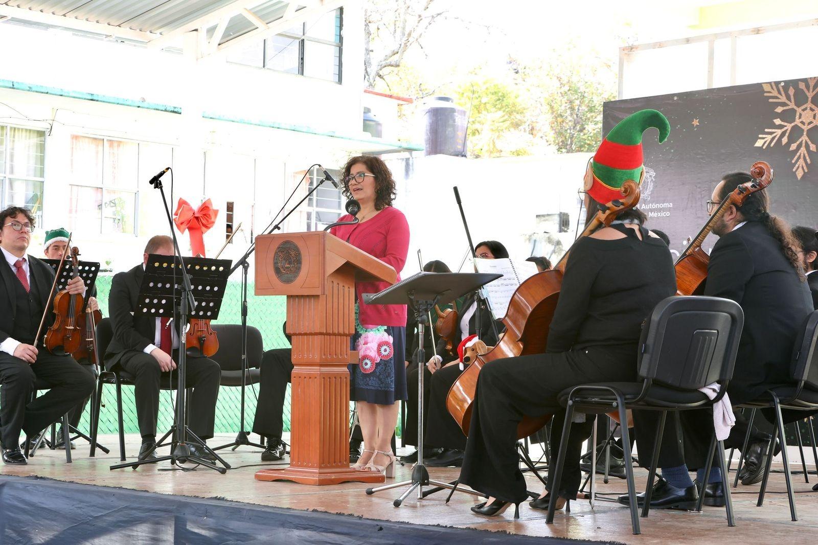 Almoloya de Alquisiras, Méx.- Con miras a fortalecer la identidad universitaria y acercar la cultura a espacios académicos y la sociedad en general, Martha Patricia Zarza Delgado, rectora de la Universidad Autónoma del Estado de México (UAEMéx), encabezó el primer concierto de navidad de la institución, bajo la batuta de la Orquesta de Cámara.