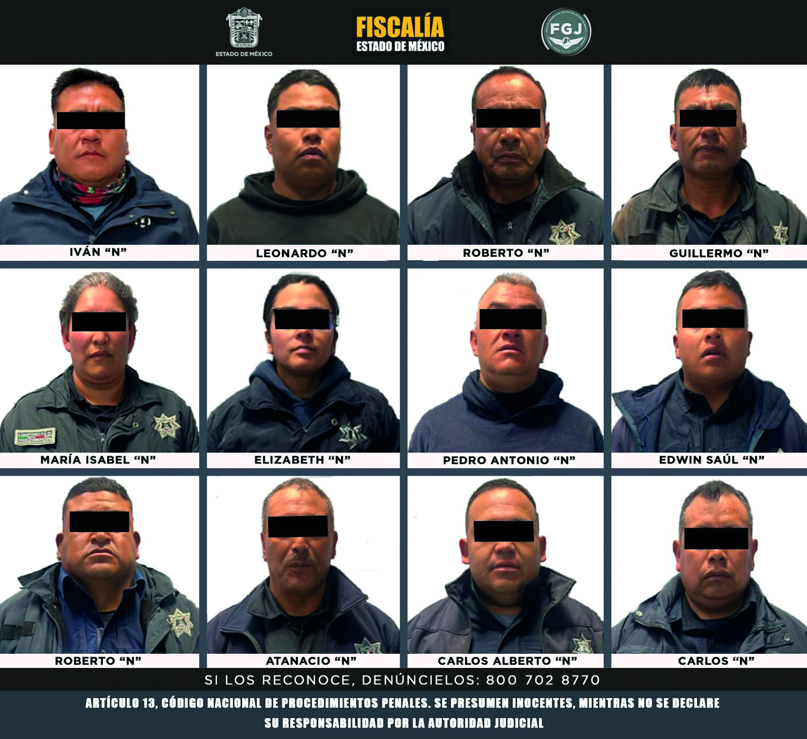 La Fiscalía General de Justicia del Estado de México realizó formulación de imputación y argumentos vinculatorios en contra de Carlos Alberto “N”, Carlos “N”, Pedro Antonio “N”, Edwin Saúl “N”, Rigoberto “N”, Guillermo “N”, Atanasio “N”, Iván “N”, Leonardo “N”, Roberto “N”, Elizabeth “N” y María Isabel “N”, por lo que la Autoridad Judicial después de revisar los datos aportados decretó de legal la detención los 12 policías municipales de Acambay, derivado de los hechos suscitados el pasado 22 de noviembre en dicho municipio y determinó mantener la medida cautelar de prisión preventiva justificada.