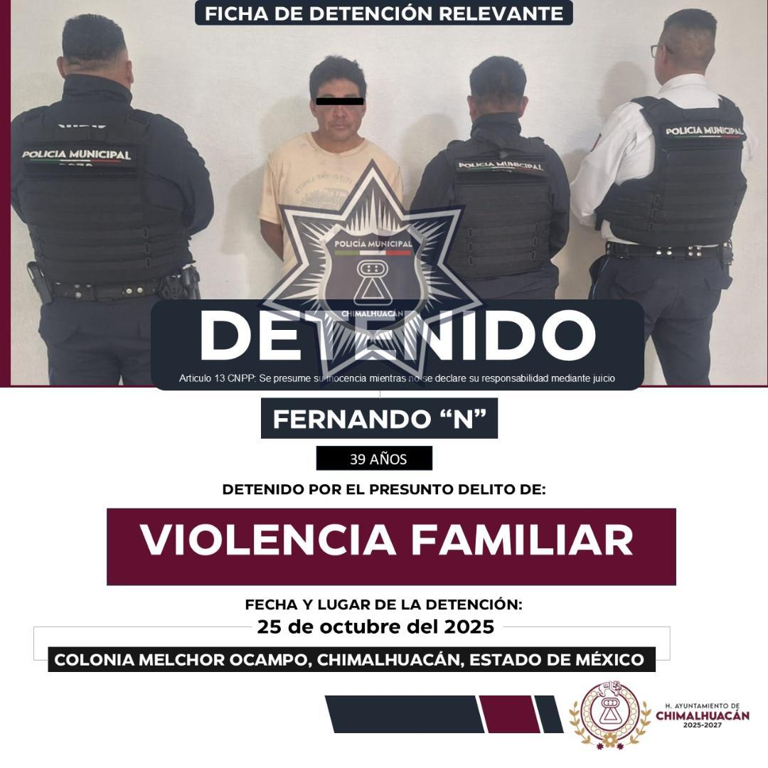 Chimalhuacán, Méx.- Tras un proceso de diálogo y contención con un probable agresor, elementos de la policía municipal lograron la detención de un generador de violencia familiar que había amenazado con lesionar a una menor de edad con un arma blanca. El aseguramiento, realizado en la colonia Melchor Ocampo, garantizó la integridad de las víctimas y la rápida actuación de las autoridades especializadas.