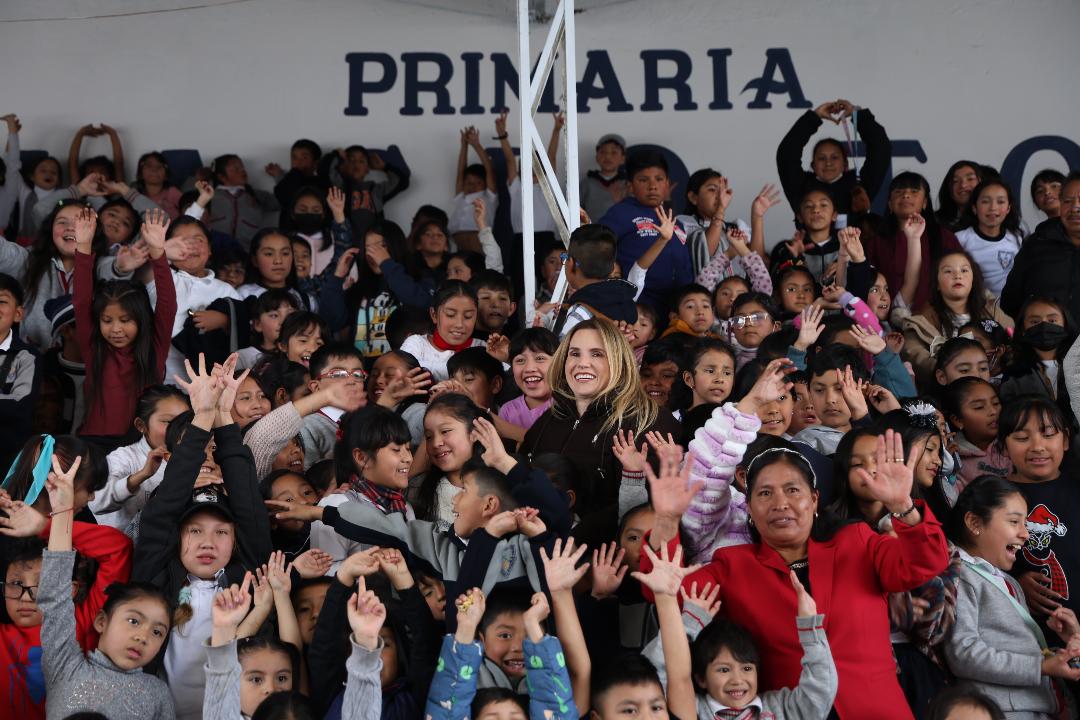 Luego, en la Primaria “Fray Ignacio Toriz”, ubicada en la Cabecera Municipal, más de mil estudiantes reconocieron las labores de mantenimiento que realizó el Gobierno de Huixquilucan con “Acción por la Educación”.