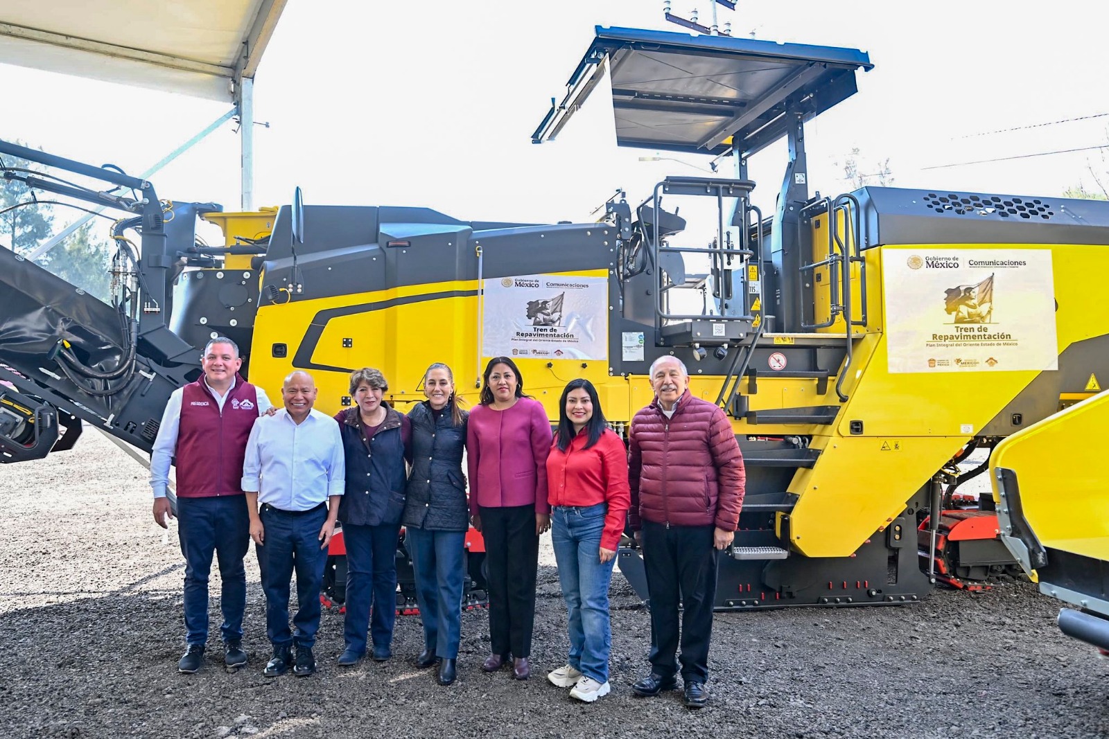Sheinbaum y Gómez entregan trenes de pavimentación para transformar el Oriente mexiquense