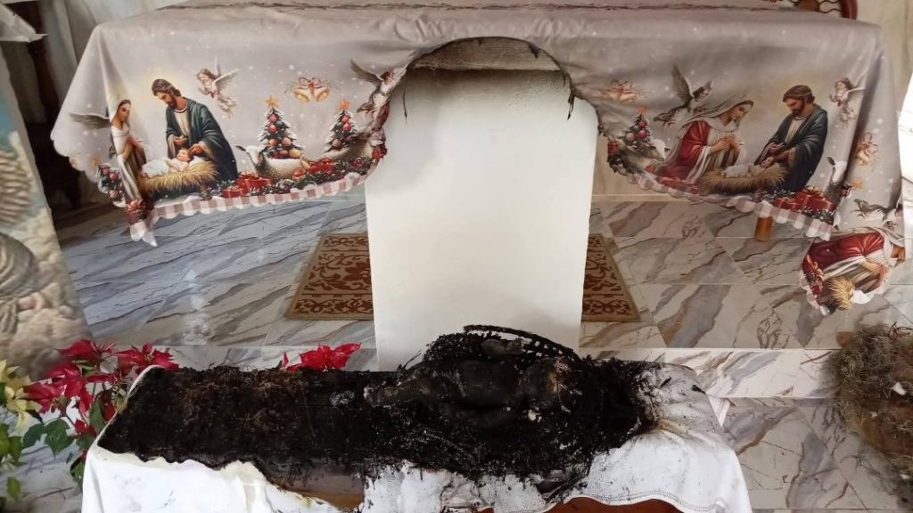 “Hasta dónde puede llegar el odio y la incomprensión de la gente, la falta de información y el racismo religioso. Hoy por la mañana, una persona de mala voluntad ingresó al interior de nuestra capilla e incendió intencionalmente la imagen de María Niña, no quiero culpar a nadie personalmente, pero si hago un llamado al respeto”, compartió.
