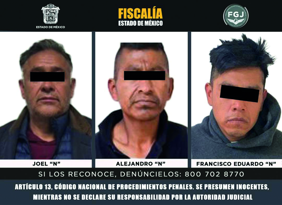 Derivado de las investigaciones, la Fiscalía solicitó órdenes de aprehensión, las cuales fueron cumplimentadas, logrando la detención de Francisco Eduardo “N”, Alejandro “N” y Joel “N”, quienes fueron puestos a disposición de la Autoridad Judicial.
