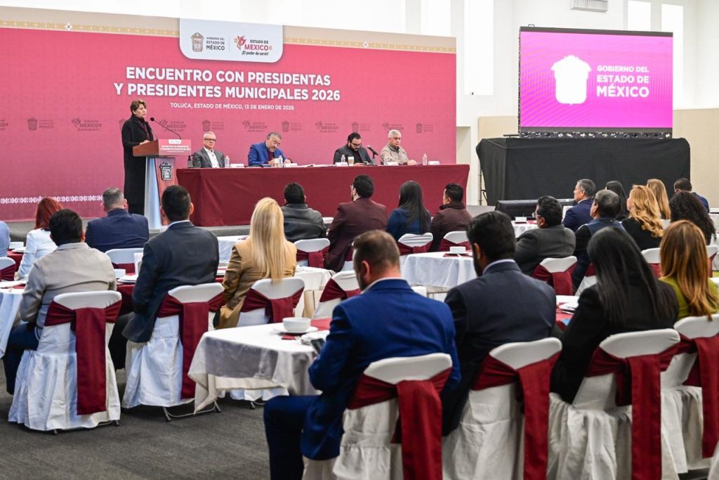 Toluca, Méx.– Para fortalecer el trabajo colaborativo con los 125 municipios de la entidad, la Gobernadora Delfina Gómez Álvarez se reunió con presidentas y presidentes municipales mexiquenses, con quienes compartió que la seguridad y obra pública serán los ejes centrales para este 2026.