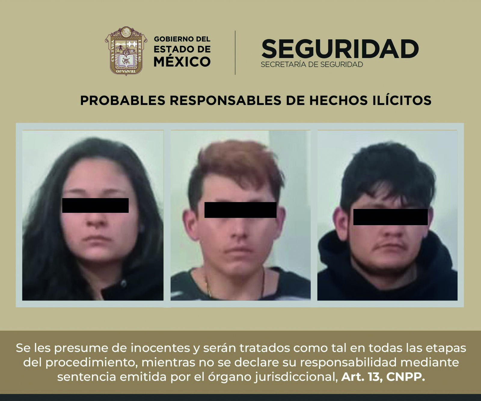 Por lo anterior, los uniformados detuvieron a Luis “N” de 31, Jorge “N” de 27 y Cinthia “N” 22 años, quienes después de conocer los derechos que la ley consagra a su favor, fueron trasladados a la Agencia del Ministerio Público donde se esclarecerá su situación legal.
