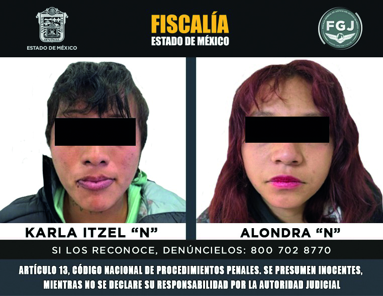 Al tomar conocimiento de estos hechos, la Fiscalía de Justicia mexiquense comenzó con la indagatoria mediante la cual pudo establecer la identidad de los presuntos responsables, por lo que solicitó a un Juez las órdenes de aprehensión correspondientes, con las cuales pudo concretar la detención de Alondra “N” y de Karla Itzel “N”, quienes quedaron a disposición de la autoridad y fueron ingresadas al Centro Penitenciario y de Reinserción Social de la zona.