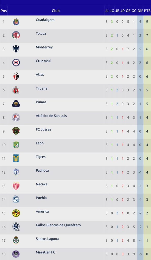 - Deportes, jornada 3, Liga MX, Resultados
