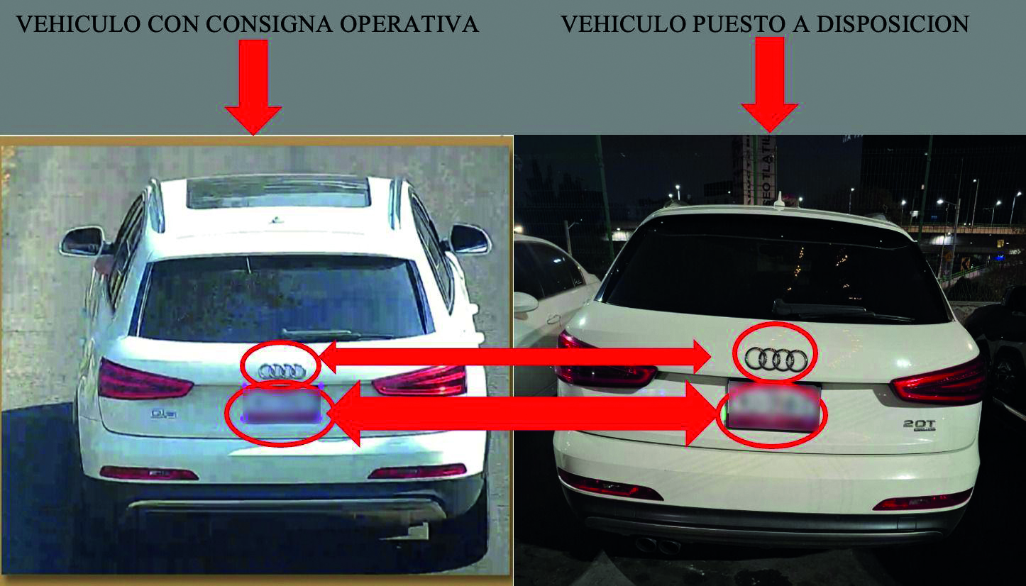 Los hechos sucedieron luego que, elementos de la Policía de Investigación de la Guardia Municipal y de la Fiscalía reciben una alerta por un vehículo de la marca Audi, tipo Q3, modelo 2014, color blanco, que contaba con consigna operativa emitida por el C5, por ello iniciaron la búsqueda y localización, logrando en la calle Hacienda de Tolentino, en la Colonia Bosques de Echegaray.
