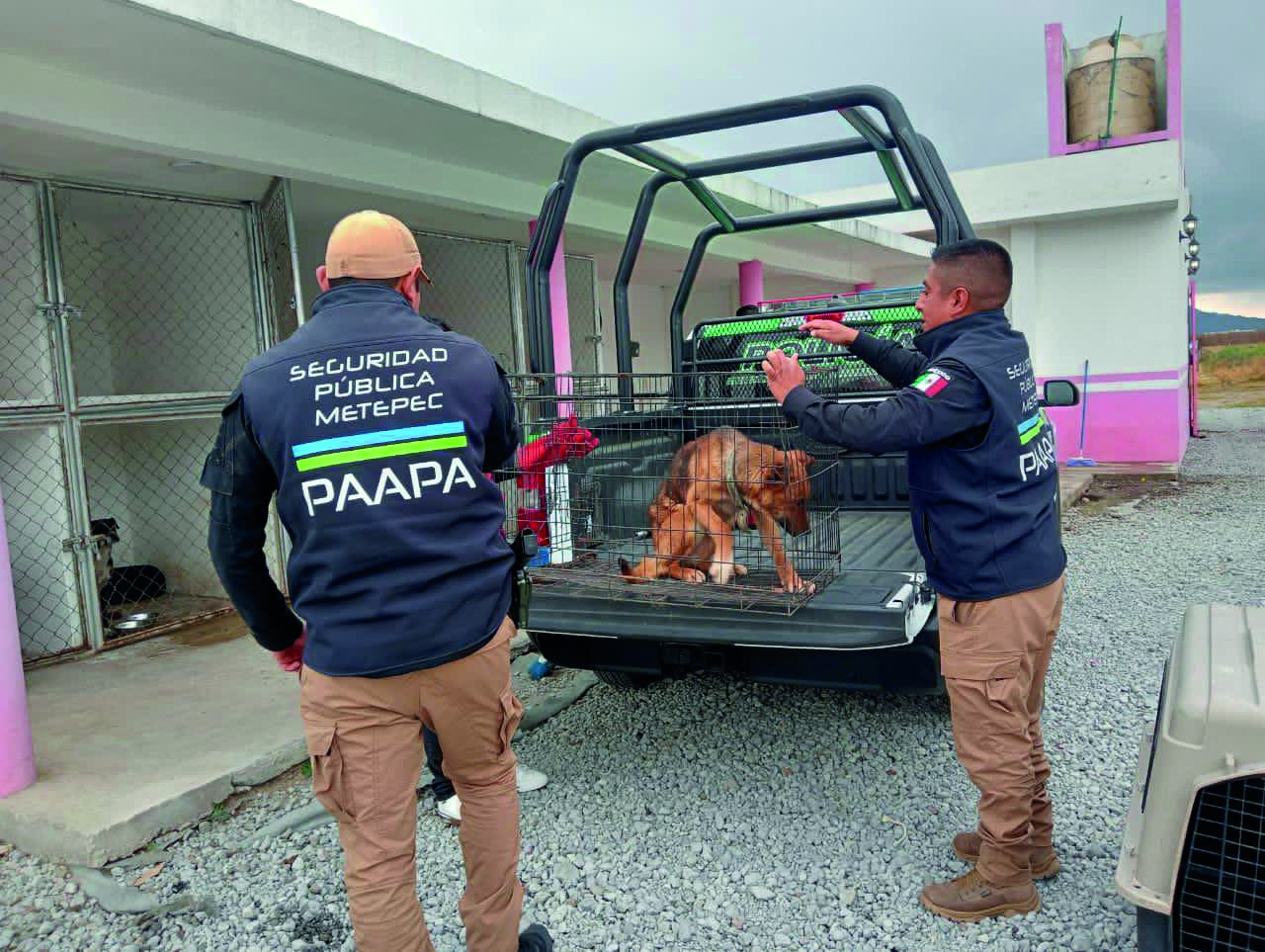 Metepec, Méx.- Gracias a un trabajo coordinado entre la Policía Municipal de Metepec, la Policía de Atención Ambiental y Protección Animal, la Fiscalía General de Justicia del Estado de México y la Policía Municipal de Tenango del Valle, fueron rescatados tres perros que se encontraban en condiciones de maltrato, amarrados con cadenas y con evidentes signos de descuido y deterioro físico.