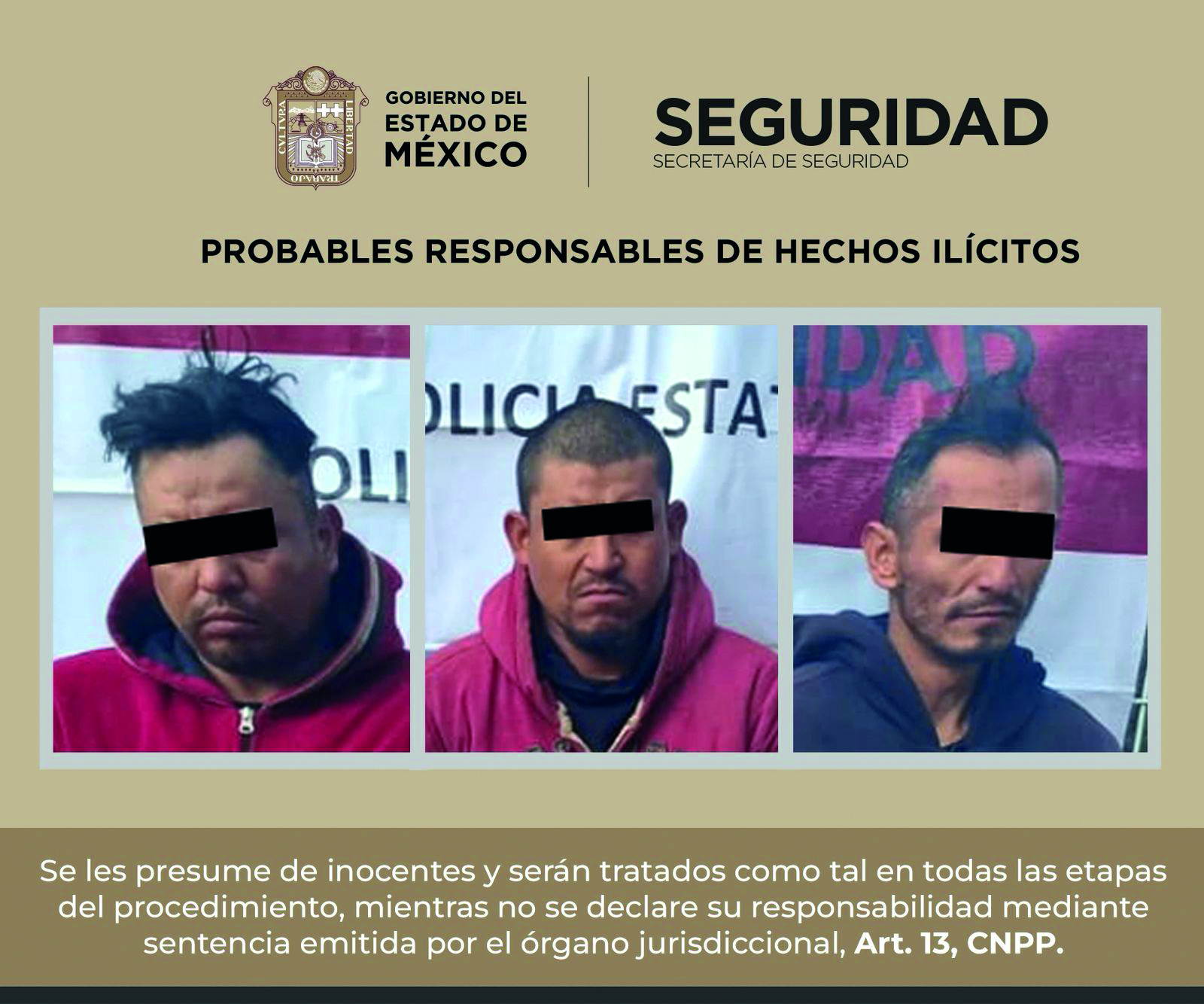 Por lo anterior, se les informó el motivo de su detención y los derechos que la ley les confiere a quienes dijeron llamarse Rogelio “N” de 35 años; Pedro “N” de 29 años; y Alfonso “N” de 37 años, junto con el vehículo y aproximadamente siete metros cúbicos de madera, fueron trasladados a la Fiscalía General de Justicia del Estado de México (FGJEM) con sede en el municipio de Metepec, donde quedaron a disposición del Ministerio Público, quien inició la carpeta de investigación correspondiente.