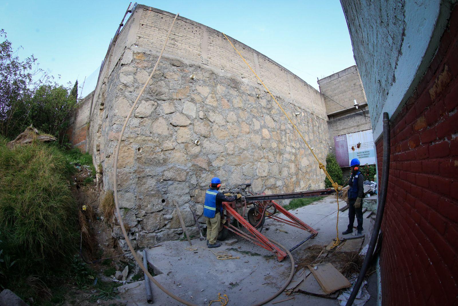 Durante la supervisión técnica de los trabajos, Miguel Ángel Gloria Ríos, representante de la empresa Riskov, explicó al alcalde, que el muro existente presenta fisuras ocasionadas por empuje de tierra y acumulación de humedad, derivadas de causas naturales; no obstante, aclaró que actualmente no representa un riesgo para las familias. Aun así, subrayó la importancia de reforzarlo de manera preventiva.