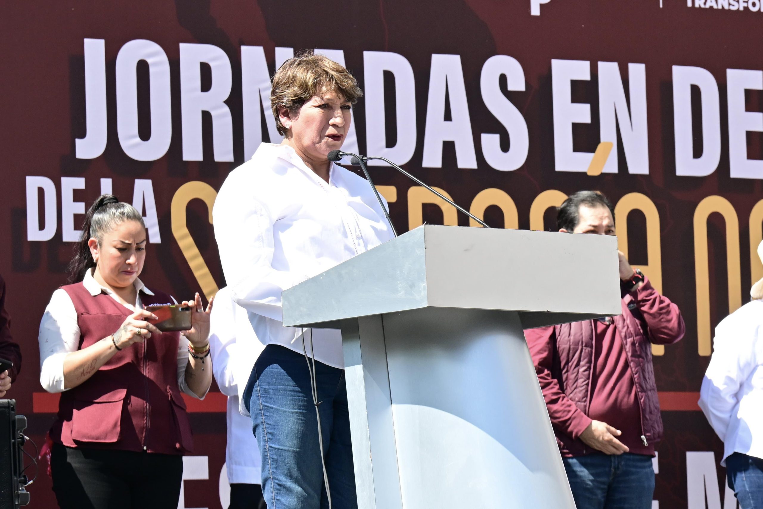Toluca, Méx.- La gobernadora Delfina Gómez Álvarez, encabezó las Jornadas en Defensa de la Soberanía Nacional Estado de México, acto en el que reafirmó el respaldo de la entidad mexiquense a la política de soberanía impulsada por la Presidenta de la República, Claudia Sheinbaum Pardo, y subrayó que el proyecto de la Cuarta Transformación se sostiene en la unidad, el trabajo y el servicio al pueblo.