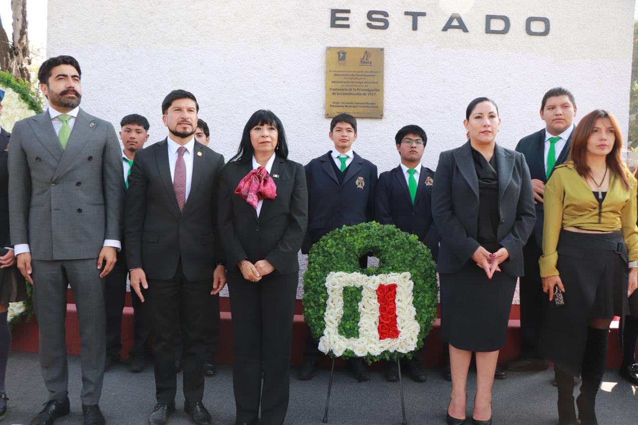 Toluca, Méx.– En representación de la Gobernadora Delfina Gómez Álvarez, la Secretaria de las Mujeres, María Esther Rodríguez Hernández, presidió la Ceremonia Conmemorativa por los aniversarios 169 y 109 de la Promulgación de las Constituciones Federales de 1857 y 1917, realizada en el Monumento en Memoria de los Constituyentes, en la ciudad de Toluca.