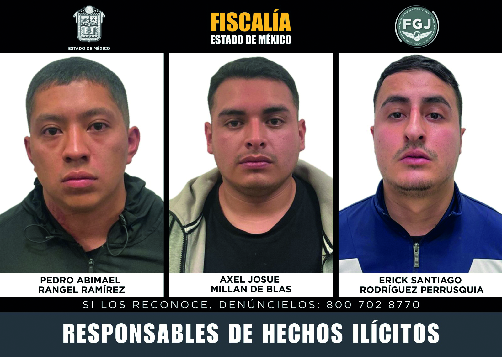 Tras proceso legal y con la información y las evidencias recabadas y aportadas por la Fiscalía mexiquense, una Autoridad Judicial determinó la participación de Axel Josué Millán de Blas, Erick Santiago Rodríguez Perrusquia y Pedro Abimael Rangel Ramírez, en el delito de secuestro exprés con fines de robo.