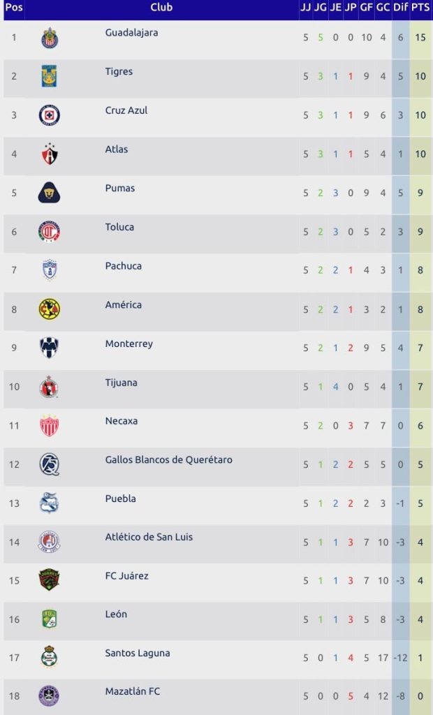 Resultados de la jornada 5 de la Liga MX