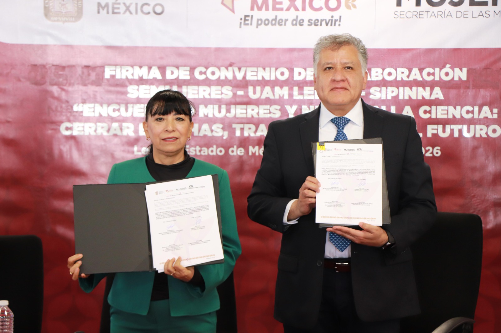 Lerma, Méx.– El Gobierno de Delfina Gómez Álvarez, a través de la Secretaría de las Mujeres del Estado de México (SeMujeres), firmó un convenio con la Universidad Autónoma Metropolitana (UAM), Unidad Lerma, orientado a fomentar la participación de niñas, adolescentes y mujeres en el ámbito científico y académico.