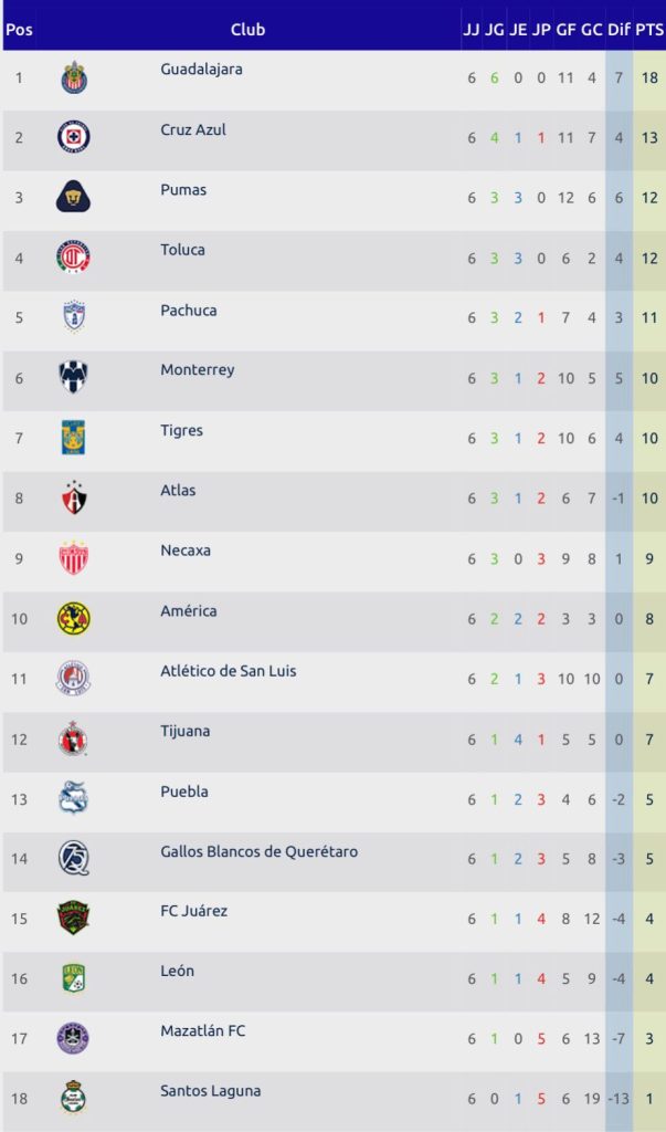 - Jornada 6, Liga MX, Resultados