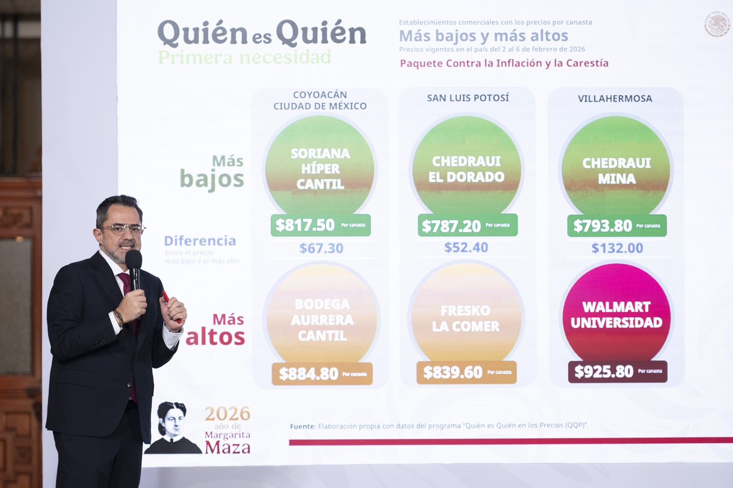 En otro tema, se informó que Finabien lidera en envío de remesas, destacado que el 93.2% de gasolineras vende la regular por debajo de los $24 pesos además se destacó la canasta Pacic no debe de rebasar los $910 pesos mexicanos y se hizo un comparativo entre distintos establecimientos comerciales de venta al por menor donde se venden productos de necesidad básica, evidenciando sus precios para advertir al comprador.