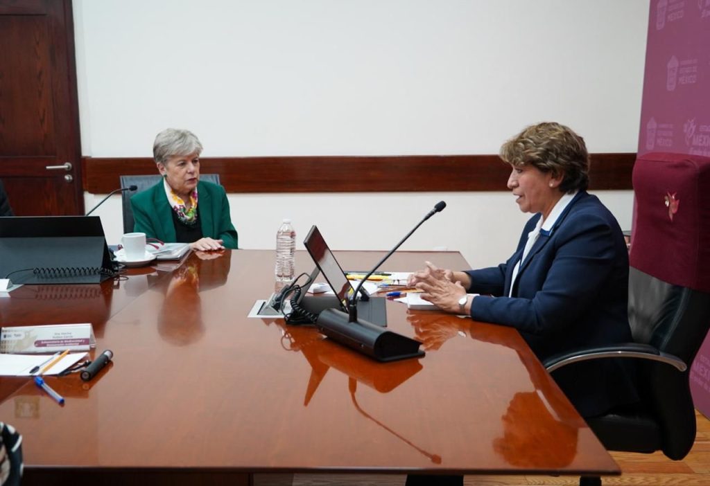 Toluca, Méx. – La gobernadora del Estado de México, Delfina Gómez Álvarez, recibió este viernes en el Palacio de Gobierno a la secretaria de Medio Ambiente y Recursos Naturales, Alicia Bárcena Ibarra, con el objetivo de consolidar acciones conjuntas en materia de protección ambiental y desarrollo sustentable.