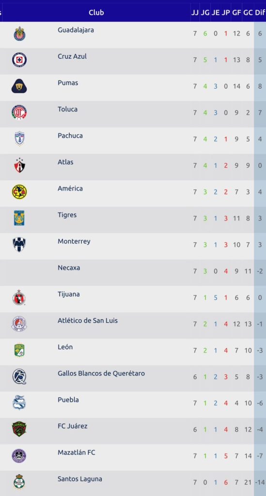 - jornada 7, Liga MX, Resultados