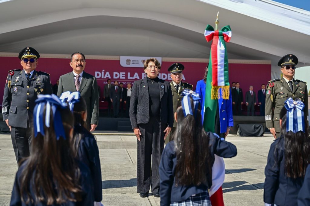 Es de la ceremonia por el Día de la Bandera que se llevó a cabo en la 22/a Zona Militar, en el municipio de Rayón, donde la gobernadora del Estado de México, DELFINA GÓMEZ ÁLVAREZ hizo un llamado a la unidad y a proteger las libertades, además de que reiteró la coordinación y el respeto entre los Poderes Ejecutivo, Legislativo y Judicial como pilares esenciales de la vida democrática.
