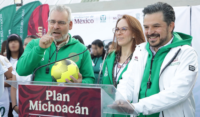 Morelia, Michoacán.- Como parte de las actividades previas a la Copa Mundial FIFA 2026, el director general del Instituto Mexicano del Seguro Social (IMSS), Zoé Robledo, y el gobernador de Michoacán, Alfredo Ramírez Bedolla, inauguraron el Torneo Futsal Femenil Sub-21, que da inicio al Mundial Social IMSS, estrategia para promover la actividad física, el deporte y la convivencia que fortalece el tejido social y estilos de vida saludables.