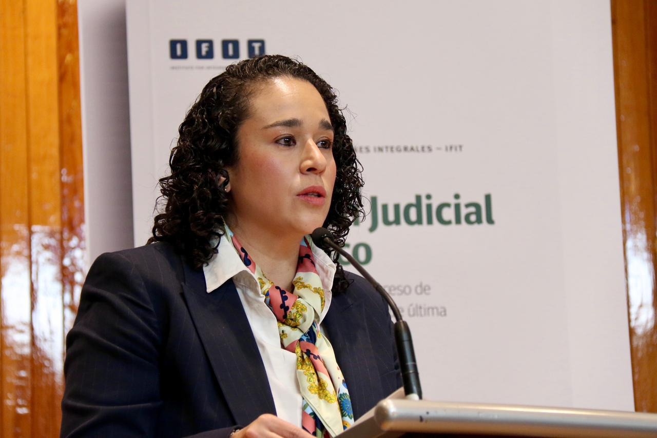 Durante su intervención, Idalina Arreola Atilano, Líder de proyecto del grupo de expertos de México (MXBT) del IFITLATAM, expuso que el estudio se enfocó en analizar cómo se realizó la selección de candidaturas judiciales que aparecieron en las boletas, al considerar que esta etapa fue clave para definir quiénes integrarían el Poder Judicial.