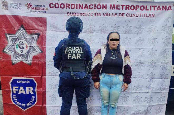 Cuautitlán Izcalli, Méx. – Gracias a los elementos de la Secretaría de Seguridad del Estado de México (SSEM) detuvieron a una mujer por su probable responsabilidad en delitos contra la salud en su modalidad de narcomenudeo, tras asegurarle aproximadamente 500 gramos de una sustancia con características de la droga conocida como cristal, cuyo valor estimado en el mercado ilícito ronda los 100 mil pesos mexicanos.