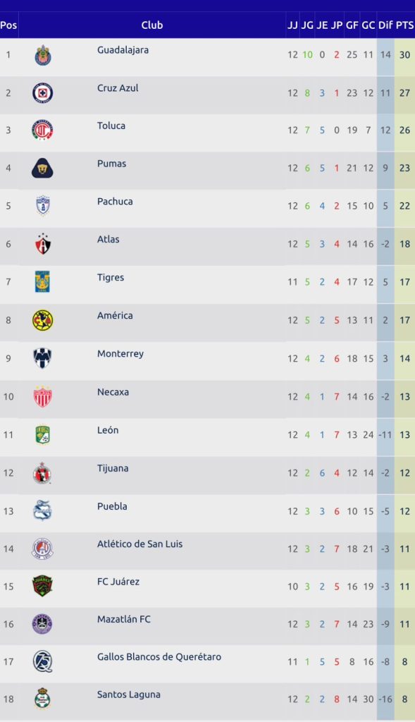 Resultados de la jornada 12 de la Liga MX