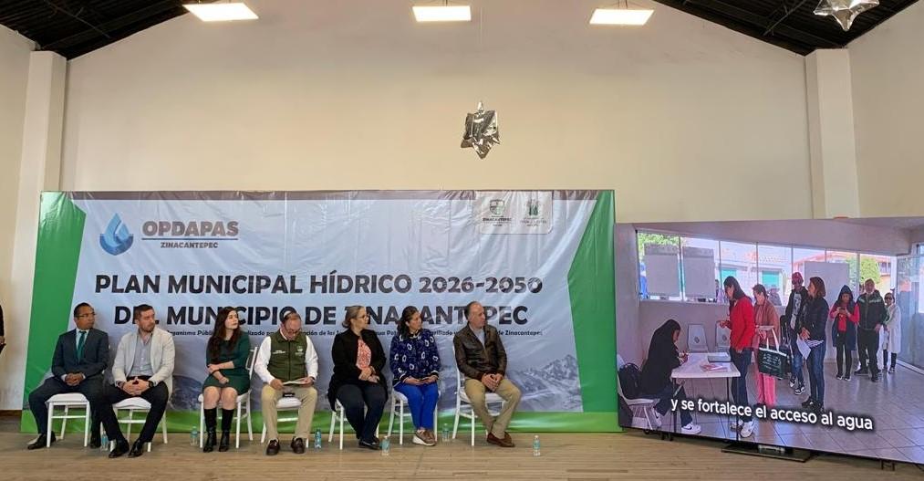 Zinacantepec, Méx.- El presidente municipal de Zinacantepec, Manuel Vilchis Viveros, en conjunto con su gabinete, presentó el Plan Municipal Hídrico 2026-2050, alineado a la política municipal y estatal para mejorar el servicio de agua potable, así como el de impulsar y proteger zonas de recargas para los próximos 25 años, aunado al fomento de responsabilidad ambiental, un plan que promueve y busca garantizar la estabilidad hídrica para las próximas generaciones.