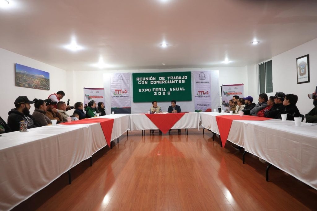 Es de la reunión que sostuvo el alcalde de Villa Victoria, MARIO SANTANA CARBAJAL, con los comerciantes que serán los responsables de ofrecer sus servicios en la próxima Expo Feria Anual 2026, que será del 9 al 17 de mayo, una fecha esperada para los pobladores de la región, pues se llevan a cabo actividades agropecuarias, comerciales, artísticas, deportivas, gastronómicas y artesanales, entre otras.