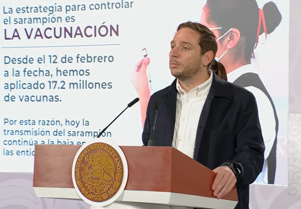 Ciudad de México.- Durante la mañanera del pueblo, se dieron a conocer los resultados de la campaña masiva a nivel nacional en aplicación masiva implementada por el Gobierno de México a las dosis de vacunas contra el sarampión, mismos que, gracias a la misma, se logró frenar la transmisión del sarampión en prácticamente todos los estados de la República, información brindada por el Subsecretario de Integración Sectorial y Desarrollo de la Secretaría de Salud (SSa), Eduardo Clark.